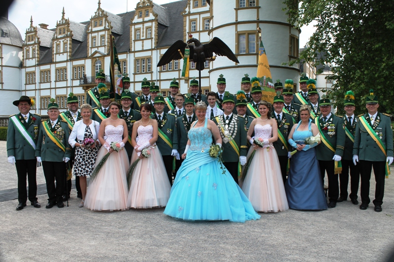 Am Schützenfestsonntag fand der grosse Festmarsch durch die Straßen von Schloss Neuhaus statt. Zuvor traf sich der Hofstaat zum traditionellen Hoffoto.