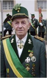 Anläßlich des 100 - jährigen Jubiläums 2013 stand der verdiente langjährige Leiter des Festausschusses der Bruderschaft, Ehren - Festausschußvorsitzender des Bataillons und Ehrenoberleutnant der Bruderschaft Lorenz Husemann, im Mittelpunkt der Würdigung seiner Verdienste durch Oberst Michael Pavlicic, der ihm dazu die Bernhard Graf von Galen Plakette des Bundes der Historischen Deutschen Schützenbruderschaften verlieh. Am Freitag begleiten die Schützen der Bruderschaft und der Hatzfelder-Kompanie Lorenz Husemann nach dem Seelenamt um 14.00 in der Pfarrkirche St. Joseph Mastbruch auf dem Weg zu seiner letzten Ruhestätte auf dem Waldfriedhof. Geboren am 18.6.1920 trat der Eisenbahner aus Überzeugung 1948 in die Hatzfelder Kompanie ein. Seine Leidenschaft galt dem Festausschuß dessen langjährig verdienter Leiter er war. Hohe Auszeichnungen begleiteten seinen Weg , der Kompanieverdienstorden der Hatzfelder 1971, das Silberne Verdienstkreuz bereits 1963, der Hohe Bruderschaftsorden 1975 und das St. Sebastianus Ehrenkreuz im Jahr 1983. | ![]() |