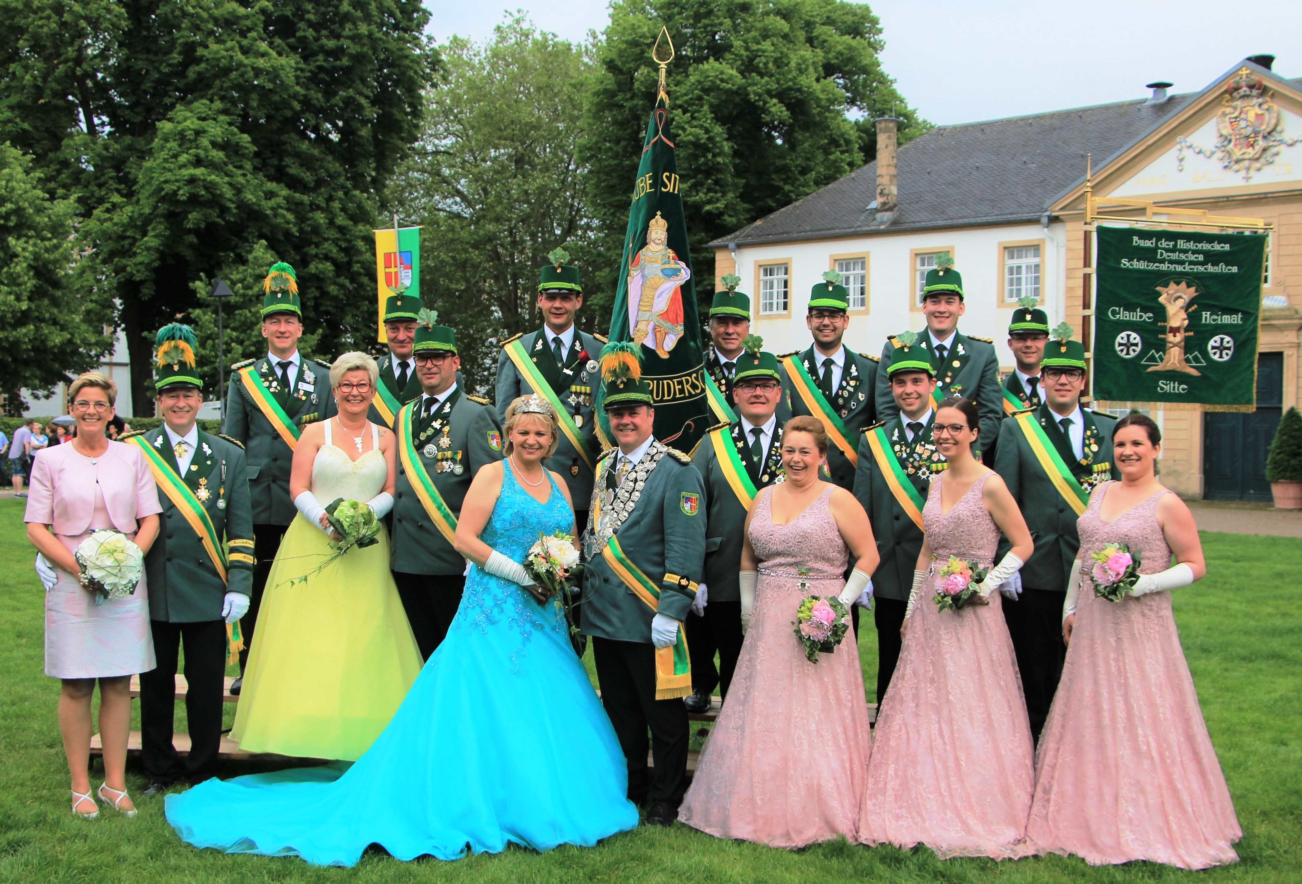 Das Königspaar Olaf und Anette Pippert und das Zepterprinzenpaar Marcel und Jenny Lause stammen aus der Hatzfelder-Kompanie.